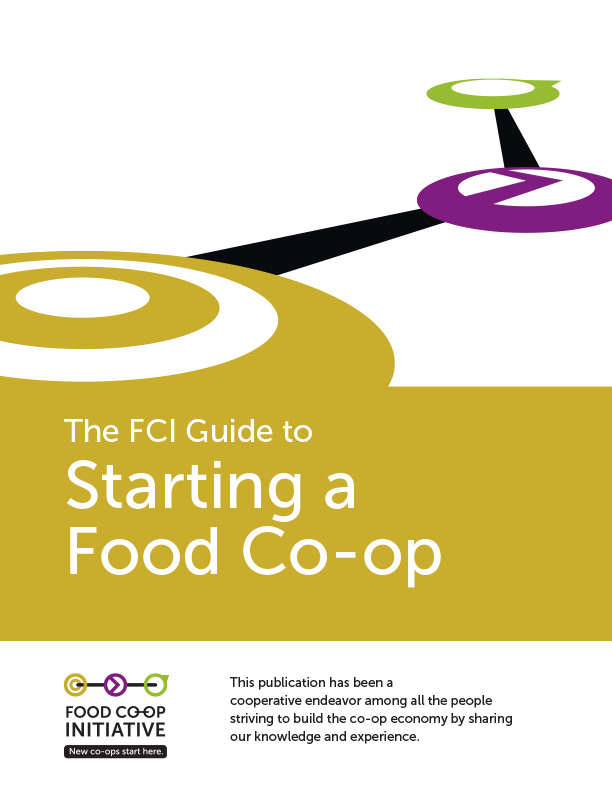 Logo for the only national non-profit supporting start-up food cooperatives and organizers. The icons symbolize the stages these grassroots projects often take: discussions around someone’s kitchen table, then broader engagement with the larger community, then launch and growth into reality.