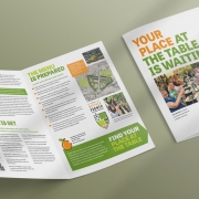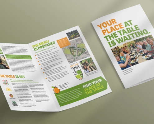The project scope was extensive, encompassing the main RFSA logo plus a visually connected sub-brand for their Next-Gen Farmer Training program and a retail food co-op. For RFSA and the programs under their umbrella, we developed a full suite of community marketing materials, donor pieces, recruitment items, conference collateral, and branded merchandise.